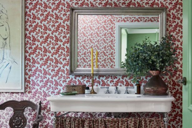Phòng tắm này thể hiện phong cách lấy cảm hứng cổ điển tinh tế với gạch có hoa văn trang trí, vách tắm…