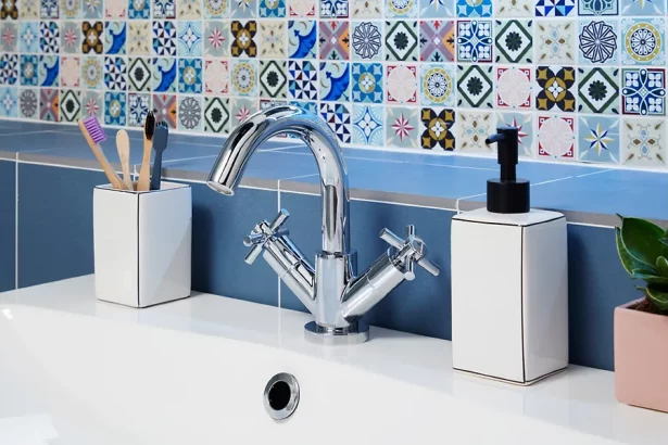 Phòng tắm này thể hiện phong cách lấy cảm hứng cổ điển tinh tế với gạch có hoa văn trang trí, vách tắm…